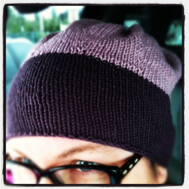 Knit in Trilly Merino & Silk. I used two different shades of purple.